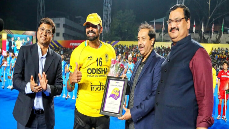 രാജ്യത്തിനായി മുന്നൂര് മത്സരങ്ങള് പൂര്ത്തിയാക്കിയ ഇന്ത്യന് ഹോക്കി ടീമിന്റെ മലയാളി ഗോള്കീപ്പറും മുന് നായകനുമായ പി.ആര് ശ്രീജേഷിനെ ആദരിച്ച് ഹോക്കി ഇന്ത്യ. ടീം അംഗങ്ങളുടെ സാന്നിദ്ധ്യത്തില് 300 എന്നെഴുതിയ പ്രത്യേക തൊപ്പിയും ഒരു മൊമന്റോയും നല്കിയാണ് താരത്തെ ആദരിച്ചത്. മറുപടി പ്രസംഗത്തില് വികാരാധീനനായ ശ്രീജേഷ് രാജ്യത്തിനായി കപ്പ് നേടുമെന്നും പറഞ്ഞു.