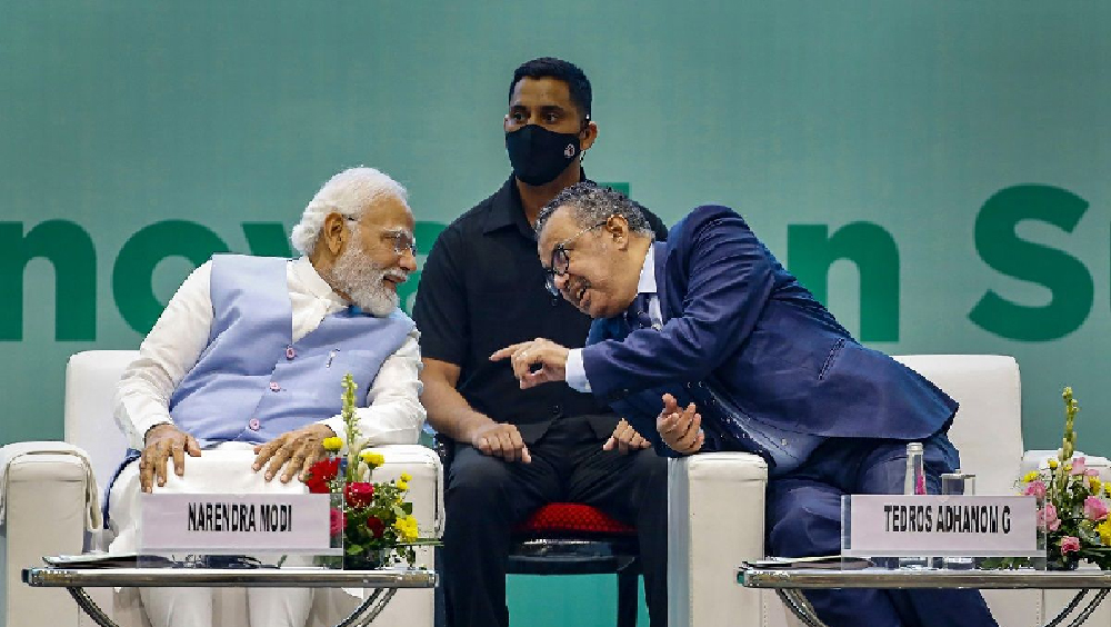 ടെഡ്രോസ് അദാനോം ഗെബ്രിയേസസ് സ്വീകിരിക്കുന്നതായി പ്രധാനമന്ത്രി നരേന്ദ്രമോദി സമൂഹമാദ്ധ്യമത്തിലൂടെ പോസ്റ്റ് പങ്കുവെച്ചിരുന്നു. ആയുഷ് മന്ത്രാലയം പങ്കുവെച്ച പോസ്റ്റിൽ നൃത്തം ചെയ്യുന്ന ടെഡ്രോസ് അദാനോമിന്റെ ദൃശ്യങ്ങളാണ് പ്രധാനമന്ത്രി പങ്കുവെച്ചിരിക്കുന്നത്. തന്റെ പ്രിയ സുഹൃത്ത് തുളസി ഭായ് നവരാത്രിക്ക് തയ്യാറായിക്കഴിഞ്ഞു എന്നായിരുന്നു പ്രധാനമന്ത്രി പങ്കുവെച്ച പോസ്റ്റിന്റെ അടിക്കുറിപ്പ്. പരമ്പര്യ ചികിത്സയുടെ യോഗത്തിന് പുറമേ ജി20 മന്ത്രിതല യോഗത്തിലും അദ്ദേഹം പങ്കെടുക്കും.