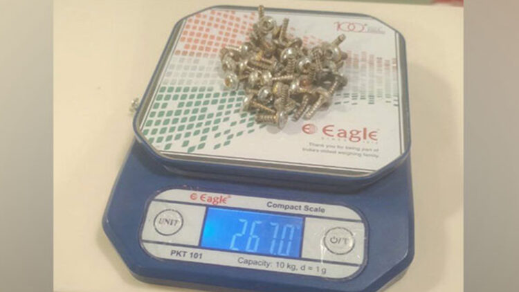ഇയാളുടെ ബാഗേജിൽ നട്ട്, ബോൾട്ടുകളുടെ രൂപത്തിൽ ഒളിപ്പിച്ച നിലയിലായിരുന്നു സ്വർണ്ണം കണ്ടെത്തിയത്. ഇത് ഏകദേശം 267 ഗ്രാം തൂക്കമുണ്ടാകും എന്ന് ഉദ്യോഗസ്ഥർ പറയുന്നു. സംഭവത്തിൽ കൂടുതൽ അന്വേഷണങ്ങൾ നടന്നുവരികയാണ്.
