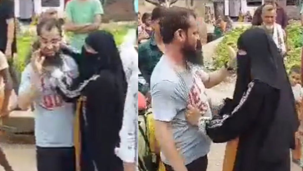 വിദേശത്തിരുന്ന് തലാക്ക് ചൊല്ലി വിവാഹബന്ധം ഒഴിവാക്കിയ ഭര്ത്താവിനെ നടുറോഡിലിട്ട് ചോദ്യം ചെയ്ത് ഭാര്യ. വിദേശത്ത് നിന്ന് തിരികെ എത്തിയപ്പോഴായിരുന്നു വിചാരണ. പര്ദ്ദ ധരിച്ച സ്ത്രീയാണ് നാട്ടുകാരും ബന്ധുക്കളും നോക്കി നില്ക്കെ ഭര്ത്താവിനെ ബൈക്കില് നിന്ന് വലിച്ചിറക്കി ചോദ്യം ചെയ്യുന്നത്. ഇയാള് സുഹൃത്തിനൊപ്പം കയറി രക്ഷപ്പെടാന് ശ്രമിക്കുമ്പോഴാണ് ചുറ്റിപ്പിടിച്ച് ബൈക്കില് നിന്ന് വലിച്ചിറക്കുന്നത്.