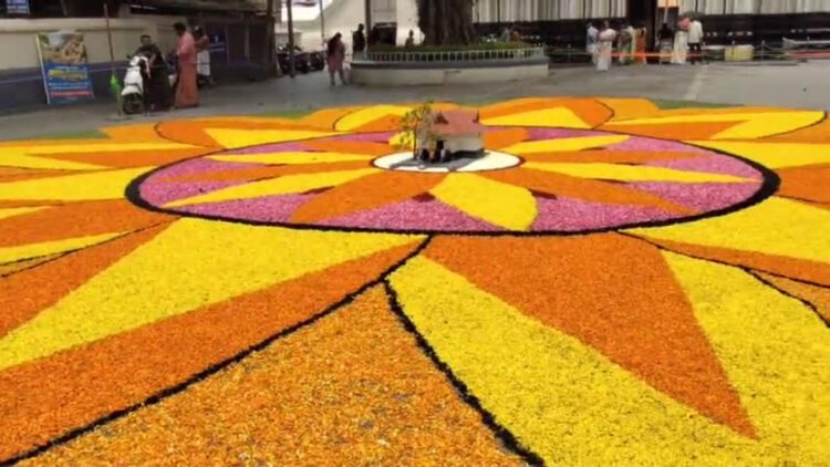 തൃശൂർ: ഇരിങ്ങാലക്കുട കൂടൽമാണിക്യം ക്ഷേത്രത്തിന് മുന്നിലൊരുക്കിയ കൂറ്റൻ പൂക്കളം ശ്രദ്ധേയമാകുന്നു. കൂടൽമാണിക്യം സായാഹ്ന കൂട്ടായ്മ്മയുടെ ആഭിമുഖ്യത്തിലാണ് 50 അടിയോളം വലിപ്പമുള്ള ഓണപൂക്കളം ക്ഷേത്രത്തിന്റെ കിഴക്കേ ഗോപുര നടയിൽ ഒരുക്കിയത്. ഭീമൻ പൂക്കളം കാണാൻ നിരവധിപേരാണ് ഓണനാളുകളിൽ ഇവിടേക്കെത്തുന്നത്.
