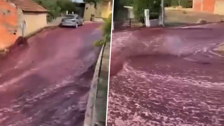 കഴിഞ്ഞ ദിവസം പോര്‍ച്ചുഗീസിലെ ഒരു ഗ്രാമം സാക്ഷിയായത് അപ്രതീക്ഷിതമായ ഒരു സംഭവത്തിനാണ്. ദശലക്ഷക്കണക്കിന് ലിറ്റര്‍ റെഡ് വൈന്‍ ഒഴുകുന്ന കാഴ്ച കണ്ടാണ് ആ ഗ്രാമവാസികള്‍ ഉണര്‍ന്നത്. സാവോ ലോറന്‍കോ ഡോ ബെയ്റോയിലെ ഒരു ഡിസ്റ്റിലറിയില്‍ രണ്ട് കൂറ്റന്‍ വൈന്‍ ടാങ്കുകള്‍ പൊട്ടിത്തെറിച്ചതിന് പിന്നാലെയാണ് അസാധാരണ സംഭവമുണ്ടായത്. അനൈഡ എന്ന ഗ്രാമത്തിലാണ് വീഞ്ഞിന്റെ പുഴ കുത്തിയൊലിച്ചെത്തിയത്.
