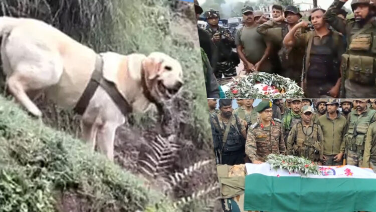 #WATCH | Indian Army personnel pay last respects to Indian Army dog Kent, a six-year-old female labrador of the 21 Army Dog Unit. The canine soldier laid down her life while shielding its handler during the Rajouri encounter operation in J&K. Kent was leading a column of… pic.twitter.com/gAxkTusG33