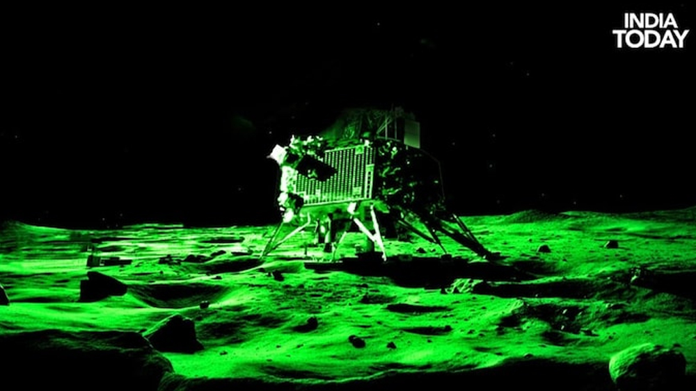 ചന്ദ്രയാൻ -3 ന്റെ വിക്രം ലാൻഡർ രാത്രി കാഴ്ചയിൽ.. AI സാങ്കേതികവിദ്യയിലാണ് ഈ ചിത്രം സൃഷ്ടിച്ചത്.