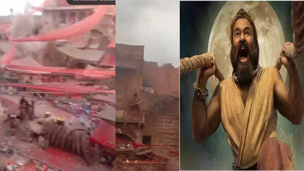 തീപിടിച്ച് പുകമയമായ അന്തരീക്ഷത്തിൽ വെടിയൊച്ചയുടെ ശബ്ദം; സിനിമ ചിത്രീകരണത്തിനിടയിലെ വീഡിയോ വൈറൽ; വാലിബനിലേതെന്ന് ആരാധകർ