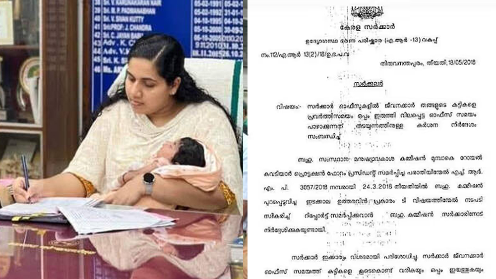 സമയനഷ്ടം ഉണ്ടാകുമെന്നതിനാൽ സർക്കാർ ജീവനക്കാർ ഓഫീസിൽ കുട്ടികളെ കൊണ്ട് വരരുതെന്നാണ് പഴയ ഉത്തരവിൽ പറയുന്നത്. 2018-ൽ മനുഷ്യാവകാശ കമ്മീഷന്റെ നിർദ്ദേശത്തിന്റെ അടിസ്ഥാനത്തിലാണ് ഉത്തരവിറക്കിയത്.