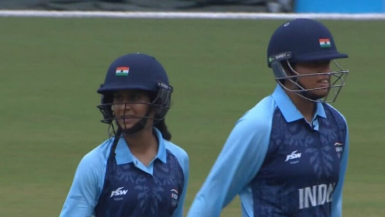 ഓപ്പണർമാരായ സ്മൃതി മന്ദാനയും ഷഫാലി വർമ്മയും ചേർന്ന് ഇന്ത്യയ്ക്ക് മികച്ച തുടക്കമാണ് സമ്മാനിച്ചത്. അർദ്ധ സെഞ്ച്വറി നേടിയ ഷഫാലി വർമ്മയാണ് ഇന്ത്യയുടെ ടോപ് സ്കോറർ. 5 സിക്സും 6 ഫോറും അടങ്ങുന്നതായിരുന്നു ഷഫാലിയുടെ ഇന്നിംഗ്സ്. 39 പന്തിൽ നിന്ന് 69 റൺസായിരുന്നു താരത്തിന്റെ സമ്പാദ്യം. സ്മൃതി 14 പന്തിൽ നിന്ന് 27 റൺസും സ്വന്തമാക്കി. റിച്ച ഘോഷ് 7 പന്തിൽ നിന്ന് 23 റൺസും നേടി. 29 പന്തിൽ നിന്ന് 47 റൺസുമായി ജമീമ റോഡ്രിഗസ് പുറത്താകാതെ നിന്നു.