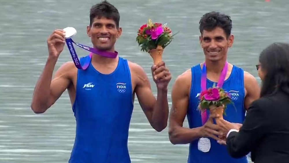 തുഴച്ചിലിൽ പുരുഷന്മാരുടെ ലൈറ്റ് വെയ്റ്റ് ഡബിൾ സ്‌കൾസ് വിഭാഗത്തിലാണ് ഇന്ത്യൻ ജോഡികളായ അരവിന്ദ് സിംഗും അർജുൻ ജത് ലാലും വെള്ളി നേടിയത്. 6 മണിക്കൂറോളം നീണ്ട മത്സരത്തിലാണ് ഇന്ത്യൻ സഖ്യം വെള്ളി നേടിയത്.