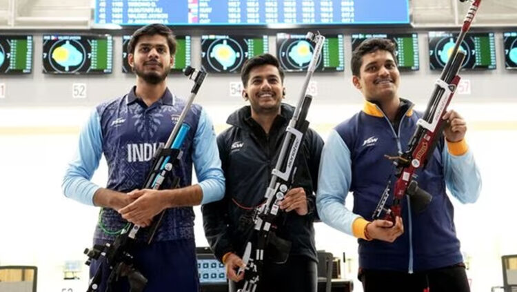 ദിവ്യാൻഷ് സിംഗ് പൻവർ, ഐശ്വര്യ പ്രതാപ് സിംഗ് തോമർ, രുദ്രാങ്കാഷ് പാട്ടീൽ എന്നിവരടങ്ങുന്ന ടീമാണ് സ്വർണം നേടിയത്. 10 മീറ്റർ എയർ റൈഫിൾ വിഭാഗത്തിൽ ലോക റെക്കോഡോടെയാണ് ടീമിന്റെ പ്രകടനം. 1893.7 പോയന്റാണ് ഇന്ത്യൻ ടീം നേടിയത്. ഇന്ത്യയ്ക്ക് പിന്നിൽ കൊറിയ രണ്ടാം സ്ഥാനവും ചൈന മൂന്നാം സ്ഥാനവും കരസ്ഥമാക്കി.