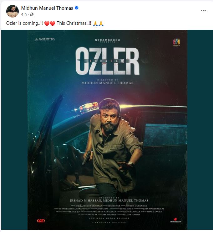 സത്യന്‍ അന്തിക്കാടിന്‍റെ മകള്‍ എന്ന ചിത്രത്തിന് ശേഷം ജയറാം നായകനായെത്തുന്ന മിഥുന്‍ മാനുവല്‍ തോമസ് സംവിധാനം ചെയ്യുന്ന ‘അബ്രഹാം ഓസ്‍ലര്‍’ റിലീസ് തിയതി പ്രഖ്യാപിച്ചു. ജയറാമിന് ബ്രേക്ക് ആവുമെന്ന് കരുതപ്പെടുന്ന ചിത്രത്തിലെ അദ്ദേഹത്തിന്‍റെ ലുക്ക് ഏറെ ശ്രദ്ധ നേടിയിരുന്നു. ഇപ്പോഴിതാ ചിത്രം എപ്പോള്‍ തിയേറ്ററിൽ എത്തുമെന്ന് അറിയിച്ചിരിക്കുകയാണ് അണിയറ പ്രവർത്തകർ.