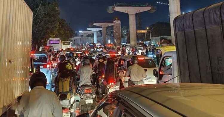 ഇന്ത്യയുടെ സിലിക്കൺ വാലിയെന്നറിയപ്പെടുന്ന പട്ടണമാണ് ബെംഗളൂരു. അതുപോലെ ട്രാഫിക് ബ്ലോക്കിനും ഏറെ പേരുകേട്ട സ്ഥലമാണവിടം. കഴിഞ്ഞ ദിവസം ബെംഗളൂരുവിലുണ്ടായ ഗതാഗതക്കുരുക്ക് പതിവിലും അധികമായിരുന്നു. ഇതിന്റെ ചിത്രങ്ങളും വീഡിയോകളും സമൂഹമാദ്ധ്യമങ്ങളിൽ വൈറലാവുകയും ചെയ്തു. മണിക്കൂറുകൾ നീണ്ട വാഹനക്കുരുക്ക് ഉണ്ടാകാൻ കാരണമെന്താണെന്നാണ് ഇതോടെ സമൂഹമാദ്ധ്യമങ്ങളിൽ ഉയരുന്ന ചോദ്യം.