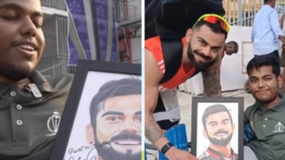 ബിസിസിഐ ഇന്സ്റ്റഗ്രാമില് പങ്കുവച്ചൊരു വീഡിയോയാണ് ആരാധകരുടെ ഹൃദയം കീഴടക്കുന്നത്. സൂപ്പര് താരം വിരാട് കോഹ്ലിയെ കാണാനെത്തിയ ഒരു സ്പെഷ്യല് ആരാധകന്റെ വീഡിയോയാണിത്. ചെന്നൈ സ്വദേശിയായ ശ്രീനിവാസ് ആണ് കഥയിലെ നായകന്. ദിവ്യാംഗനായ ഇദ്ദേഹം താന് വരച്ച കോഹ്ലിയുടെ ഛായ ചിത്രം അദ്ദേഹത്തിന് നല്കാനാണ് ചെന്നൈയിലെ സ്റ്റേഡിയത്തില് ഇന്ത്യന് ടീമിന്റെ പരിശീലം കഴിയും വരെ കാത്തിരുന്നത്.