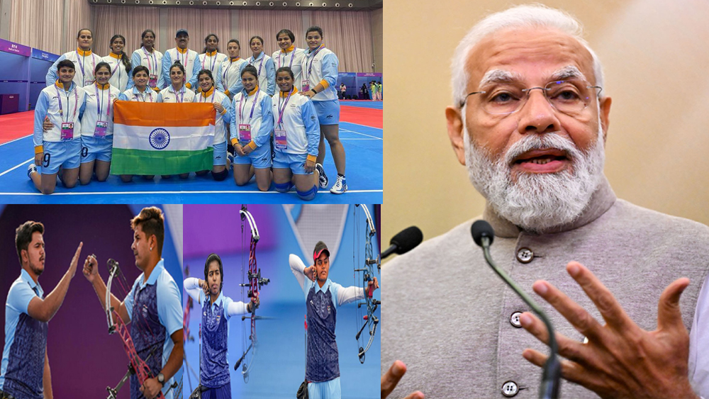 ഏഷ്യൻ ഗെയിംസിൽ ഇന്ത്യയ്ക്ക് ഇതൊരു ചരിത്ര നിമിഷമാണ്. നമ്മുടെ കബഡി വനിതാ ടീം സ്വർണം നേടിയിരിക്കുകയാണ്. ഈ വിജയം നമ്മുടെ വനിതാ അത്ലറ്റുകളുടെ അജയ്യമായ മനോഭാവത്തിന്റെ തെളിവാണ്. ഈ വിജയത്തിൽ ഇന്ത്യ അഭിമാനിക്കുന്നു. ടീമിന് അഭിനന്ദനങ്ങളെന്ന് പ്രധാനമന്ത്രി ട്വിറ്റിറിൽ കുറിച്ചു