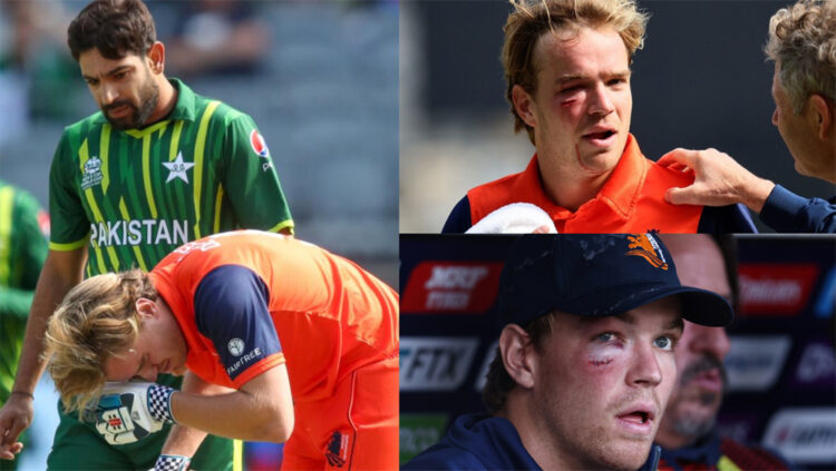 പാക് പേസാക്രമണത്തെ ആത്മവിശ്വാസത്തോടെ നേരിട്ട ബാസ് ഡേ ലീഡേയും വിക്രംജിത് സിംഗും ബാറ്റിംഗിൽ പാകിസ്താന് വെല്ലുവിളികൾ ഉയർത്തി. വിക്രംജിത് സിംഗ് പുറത്തായശേഷം ബാസ് ഡേ ലീഡേയെ പുറത്താക്കാൻ ബാബർ അസം പേസർ ഹാരീസ് റൗഫിനെ കളത്തിലിറക്കി. 2022-ലെ ടി20 ലോകകപ്പിൽ റൗഫിന്റെ ബൗൺസർ കണ്ണിന് കൊണ്ട് ചോരയൊലിപ്പിച്ച് നിന്ന ലീഡേയുടെ മുഖം ആരാധകർ മറന്നിട്ടുണ്ടാവില്ല. അതേ തന്ത്രമായിരുന്നു ഇന്നലെയും ഹാരിസ് റൗഫ് പുറത്തെടുത്തത്.