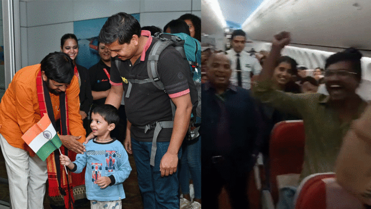വന്ദേമാതരം, ഭാരത് മാതാ കി ജയ് എന്നി മുദ്രാവാക്യങ്ങൾ മുഴക്കിയാണ് യാത്രക്കാർ വിമാനത്തിൽ നിന്നും പുറത്തിറങ്ങിയത്. ഇതിന്റെ ദൃശ്യങ്ങൾ വിദേശകാര്യമന്ത്രി എസ്.ജയശങ്കർ പങ്കുവെച്ചിരുന്നു. കേന്ദ്ര സഹമന്ത്രി കൗഷൽ കിഷോർ നേരിട്ടെത്തി യാത്രക്കാരെ സ്വീകരിച്ചു.