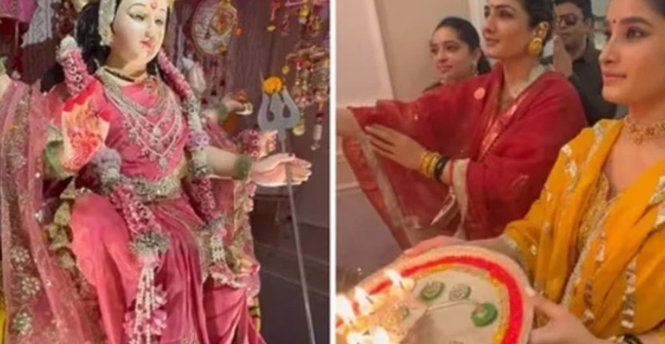 മകൾ റാഷ തദാനിയും നടി സാറാ അലി ഖാനും രവീണയ്‌ക്കൊപ്പം ആഘോഷങ്ങളിൽ പങ്കാളിയായി. പരമ്പരാഗത രീതിയിലുള്ള ചുവപ്പ് നിറത്തിലുള്ള സാരിയാണ് രവീണ ധരിച്ചിരിക്കുന്നത്. മഞ്ഞ നിറത്തിലുള്ള ചുരിദാറാണ് റാഷ ധരിച്ചിരിക്കുന്നത്. രവീണയും റാഷയും ദേവിയ്‌ക്ക് ആരതി ഒഴിയുന്നതിന്റെ വീഡിയോയും ഇതിനൊപ്പം പങ്കുവെച്ചിട്ടുണ്ട്.