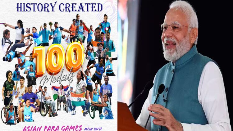 ഹാങ്ഷൗവിൽ നടക്കുന്ന ഏഷ്യൻ പാരാ ഗെയിംസിൽ 100 മെഡലുകൾ സ്വന്തമാക്കി രാജ്യത്തിന് വേണ്ടി ചരിത്ര നേട്ടം കൈവരിച്ച കായിക താരങ്ങളെ പ്രശംസിച്ച് പ്രധാനമന്ത്രി നരേന്ദ്രമോദി. എക്സിലൂടെയാണ് പ്രധാനമന്ത്രി സന്തോഷം പങ്കുവെച്ചത്.