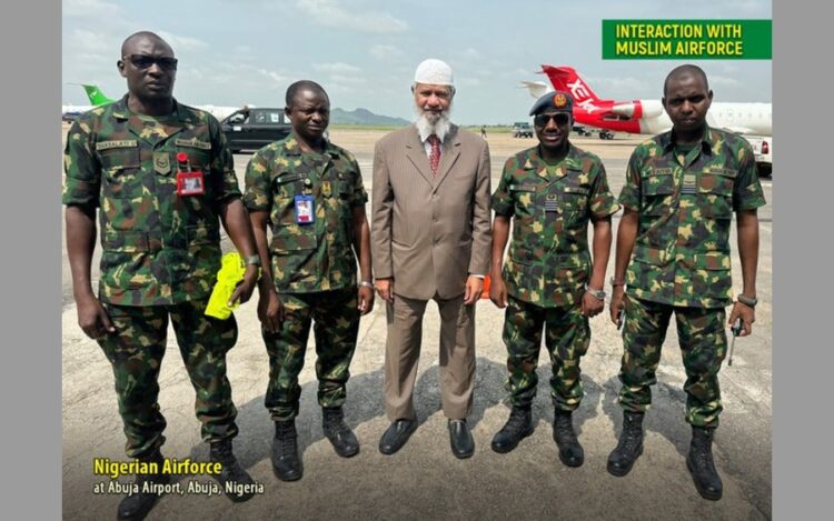 സാക്കീർ നായിക്ക് സന്ദർശന സമയത്ത് നൈജീരിയൻ സൈനികർക്കും ഇമിഗ്രേഷൻ ഉദ്യോഗസ്ഥർക്കും ഒപ്പമുള്ള ചിത്രങ്ങൾ സമൂഹ മാദ്ധ്യമങ്ങളിൽ പങ്കുവെച്ചിരുന്നു. ഈ പോസ്റ്റുകളിലാണ് ഉദ്യോഗസ്ഥരെ മുസ്ലീം എയർഫോഴ്സ്, മുസ്ലീം ഇമിഗ്രേഷൻ എന്നിങ്ങനെ മുദ്രകുത്തിയത്. നൈജീരിയൻ ന​ഗരമായ സോകോട്ടോയലെ സുൽത്താന്റെ ക്ഷണപ്രകാരമാണ് സാക്കീർ നായിക്കിന്റെ സന്ദർശനം. ഇസ്ലാമിക ശരീഅത്ത് നിയമം പിന്തുടരുന്ന പ്രദേശമാണ് സൊകോട്ടോ.
