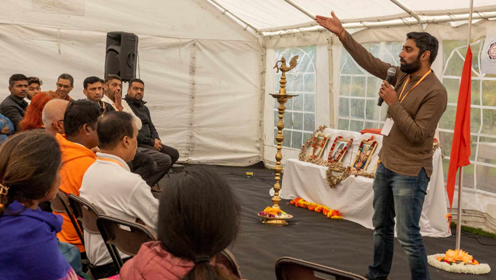 യുകെയിലെ പ്രമുഖ സാമൂഹ്യ പ്രവർത്തകനായ ഡോക്ടർ സച്ചിൻ നന്ദയാണ് ‘ധർമ്മം – വ്യക്തി – സംഘടന‘ എന്ന വിഷയത്തിൽ പ്രഭാഷണം നടത്തിയത്. ശ്രീനാരായണ ഗുരുദേവന്റെ ജീവിതത്തിലെ പ്രധാന സംഭവങ്ങളും ഗുരുദേവന്റെ പ്രധാന കൃതികളും അടങ്ങിയ കൈപ്പുസ്തകവും ശിബിരത്തിൽ പങ്കെടുത്തവർക്കെല്ലാം സംഘാടകർ നൽകി. യുകെയിൽ താമസിക്കുന്ന മലയാളികളായ ഹിന്ദുക്കളുടെ ക്ഷേമത്തിനായി പ്രവർത്തിക്കുന്ന സംഘടനയാണ് ഓം യു കെ. 2016-ൽ സമാനമനസ്കരുടെ ചെറിയ വാട്സ്ആപ്പ് ഗ്രൂപ്പായാണ് ഓം യുകെ പ്രവർത്തനങ്ങൾ ആരംഭിച്ചത്. കഴിഞ്ഞ ഏഴ് കൊല്ലത്തോളമായി യുകെയുടെ എല്ലാ ഭാഗങ്ങളിലും ഓം യുകെ സജീവമായി പ്രവർത്തന രംഗത്തുണ്ട്.