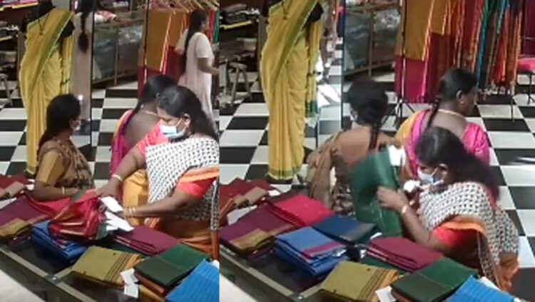 ചൈന്നെയിലെ ഒരു തുണിക്കടയിൽ നിന്നും വിലമതിപ്പുള്ള സാരികളാണ് സ്ത്രീകൾ മോഷ്ടിച്ചത്. ആയിരത്തിന്റെയോ പതിനായിരത്തിന്റെയോ അല്ല മറിച്ച് 7 ലക്ഷം രൂപ വിലമതിപ്പുള്ള സാരികളാണ് 6 സ്ത്രീകൾ ഗൂഢാലോചന ചെയ്ത് മോഷ്ടിച്ച് കൊണ്ടുപോയത്. പദ്ധതികളെല്ലാം അവർ കൃത്യമായി മെനഞ്ഞു. രണ്ട് പേർ കടയിലെ ജോലിക്കാരുടെ ശ്രദ്ധ തിരിക്കുമ്പോൾ, രണ്ട് പേർ സാരികൾ മോഷ്ടിക്കും. മറ്റ് രണ്ട് പേർ മോഷ്ടിക്കുന്ന സ്ത്രീകൾക്ക് മറയായി നിൽക്കും. ഇങ്ങനെ കൃത്യമായി ഇവർ പദ്ധതി നടത്തിയെങ്കിലും മുകളിലിരിക്കുന്ന ഒരാൾ ഈ കാര്യങ്ങളെല്ലാം കണ്ടുപിടിച്ചു. സംഭവം കടയിലെ ക്യാമറയിൽ പതിഞ്ഞതോടെ കടയുടമ പോലീസിൽ പരാതിപ്പെട്ടു. ഇതോടെ ദൃശ്യങ്ങൾ സമൂഹ മാദ്ധ്യമങ്ങളിലും പ്രചരിക്കാൻ തുടങ്ങി.