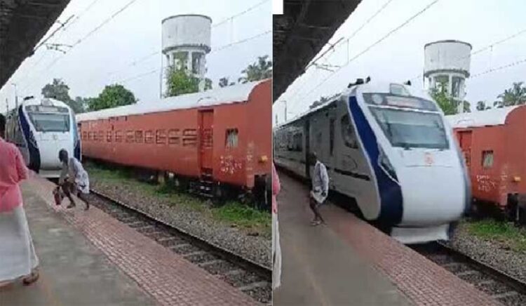 തിരൂർ റെയിൽവേ സ്റ്റേഷനിൽ ട്രാക്ക് മുറിച്ച് കടന്ന വയോധികൻ ട്രെയിൻ ഇടിക്കാതെ തലനാരിഴയ്ക്ക് രക്ഷപ്പെട്ടതിന്റെ വീഡിയോ ഇന്നലെയാണ് പ്രചരിച്ചത്. ഒറ്റപ്പാലം സ്വദേശിയാണ് അത്ഭുതകരമായി രക്ഷപ്പെട്ടത്. തിരൂർ റെയിൽവേ സ്റ്റേഷനിലുടെ വന്ദേ ഭാരത് ട്രെയിൻ കടന്ന് പോകുന്ന സമയത്താണ് ഇയാൾ ട്രാക്ക് മുറിച്ച് പ്ലാറ്റഫോമിലേക്ക് കയറിയത്. കുതിച്ച് വരുന്ന ട്രെയിനിന് മുന്നില് നിന്നും സെക്കന്റുകളുടെ വ്യത്യാസത്തിലാണ് ഇയാള് രക്ഷപ്പെട്ടത്.
