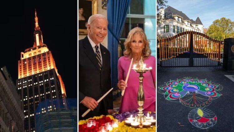 കാവി നിറത്തിൽ തിളങ്ങി എംപയർ സ്റ്റേറ്റ് ബിൽഡിംഗ് ; വൈറ്റ് ഹൗസിലും വിളക്കുകൾ തെളിയിച്ച് ദീപാവലി ആഘോഷം