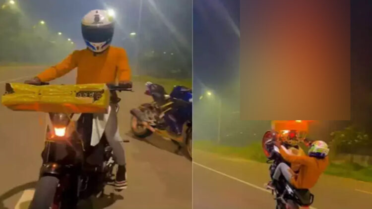 ദീപാവലി ദിനത്തിൽ ബൈക്കിൽ യുവാക്കളുടെ അഭ്യാസ പ്രകടനം. തിരുച്ചിറപ്പള്ളിയിലാണ് സംഭവം. ബൈക്ക് സ്റ്റണ്ട് നടത്തുകയും അപകടകരമായ രീതിയിൽ പടക്കങ്ങൾ പൊട്ടിക്കുകയുമായിരുന്നു യുവാക്കൾ. കൂടാതെ ഇതിന്റെ ദൃശ്യങ്ങൾ പകർത്തി സമൂഹമാദ്ധ്യമങ്ങളിൽ പ്രചരിപ്പിക്കുകയും ചെയ്തു. സംഭവത്തിൽ 10 യുവാക്കളെ പോലീസ് അറസ്റ്റ് ചെയ്തു.