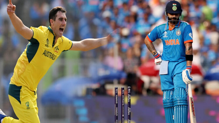 ഓപ്പണര്മാരായ ശുഭ്മാന് ഗില്, രോഹിത് ശര്മ, ശ്രേയസ് അയ്യര് എന്നിവരാണ് പുറത്തായത്. ഏഴുപന്തില് നാലു റണ്സെടുത്ത ഗില് റണ്സ് കണ്ടെത്താന് ബുദ്ധിമുട്ടി ആദ്യമേ കൂടാരം കയറി. അത്യഗ്രന് തുടക്കം നല്കിയ രോഹിത് ശര്മ്മയാകട്ടെ ഇന്ന് സെഞ്ച്വറിക്കരികെ വീഴുകയായിരുന്നു. മൂന്നാം വിക്കറ്റില് കോലിയും രോഹിതും ചേര്ന്ന് 46 റണ്സിന്റെ കൂട്ടുകെട്ടാണ് പടുത്തുയര്ത്തിയത്. നാലു റണ്സെടുത്ത ശ്രേയസും പെട്ടെന്ന് മടങ്ങിയതോടെ ഇന്ത്യയൊരു തകര്ച്ച ഭയന്നെങ്കിലും കോലി-രാഹുല് സഖ്യം കരുതലോടെ പിടിച്ചു നിന്നു. ഇരുവരും ചേര്ന്ന് 67 റണ്സിന്റെ കൂട്ടുകെട്ടാണ് ഉയര്ത്തിയത്. മാക്സ് വെല് കമ്മിന്സ്, സ്റ്റാര്ക്ക് എന്നിവര്ക്കാണ് വിക്കറ്റ്