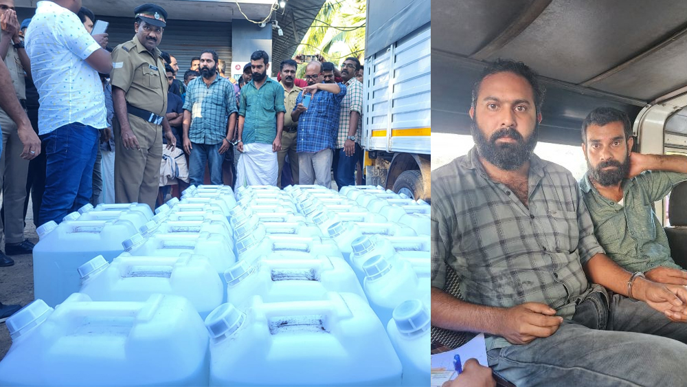 വൻ സ്പിരിറ്റ് വേട്ട: തൃശൂരിലേക്ക് കടത്തിയ 1300 ലിറ്റർ സ്പിരിറ്റ് പിടികൂടി എക്സൈസ്