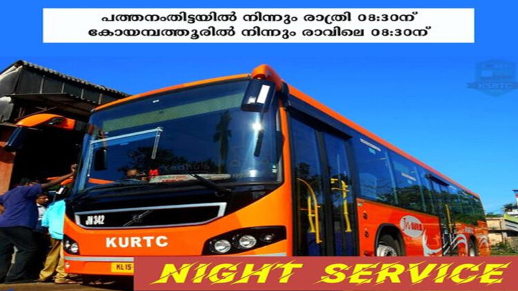 നേരത്തെ പുലർച്ചെ 4.30-ന് ആരംഭിച്ച സർവീസ് വിജയമാണെന്നാണ് കെഎസ്ആർടിസിയുടെ വിശദീകരണം. നിലവിൽ മൂന്ന് കോയമ്പത്തൂർ സർവീസാണ് പത്തനംതിട്ടയിൽ നിന്നുള്ളത്. രാവിലെ 4.30 (എസി ലോ ഫ്ലോർ), രാവിലെ 8.00 (സൂപ്പർ ഫാസ്റ്റ്), രാത്രി 8.30 (എസി ലോ ഫ്ലോർ).