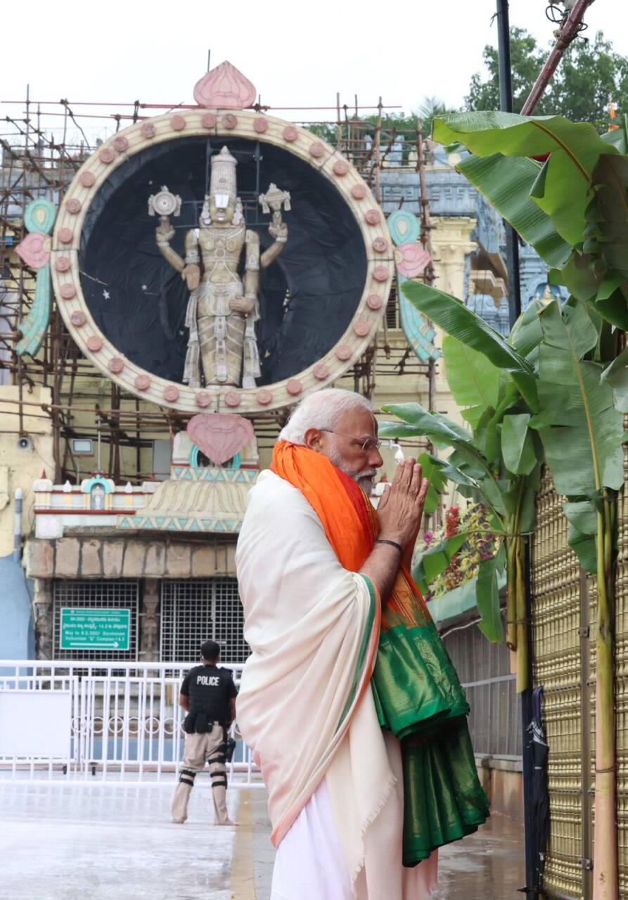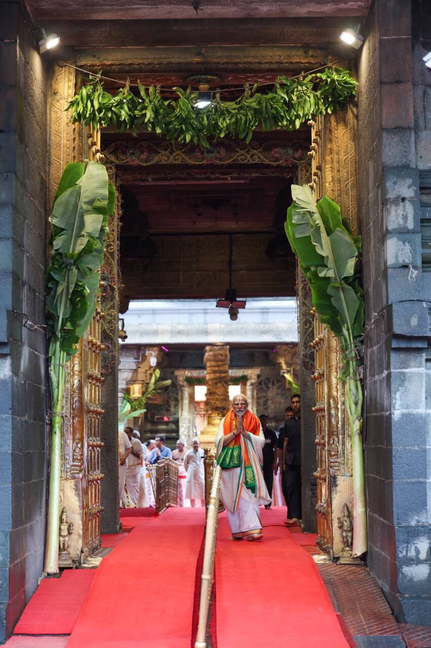 ദർശനത്തിന് ശേഷം പ്രധാനമന്ത്രി ഗസ്റ്റ് ഹൗസിലേക്ക് മടങ്ങും. തുടർന്ന് സെക്കന്തരാബാദിലേക്ക് യാത്ര തിരിക്കും. തിരുപ്പതി വിമാനത്താവളത്തിലെത്തിയ പ്രധാനമന്ത്രിയെ മുഖ്യമന്ത്രി വൈ എസ് ജഗൻ മോഹൻ റെഡ്ഡി സ്വീകരിച്ചു.