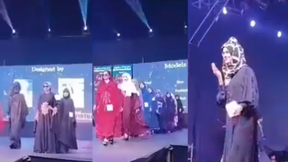 Burqa-clad women walk the ramp in UP college showacasing creativity in Burqa; Muslim body Jamiat-e-Ulema threatens strict action. pic.twitter.com/yIRBVb92SC