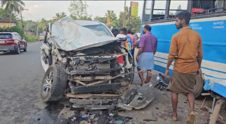 മലപ്പുറം: എടപ്പാളിൽ സ്വകാര്യ ബസും കാറും കൂട്ടിയിടിച്ച് അപകടം. സംഭവത്തിൽ എട്ട് പേർക്ക് പരിക്കേറ്റു. തൃശൂർ ഭാഗത്ത് നിന്നും എത്തിയ കാർ എടപ്പാളിലേക്ക് പോകുകയായിരുന്ന ബസിൽ ഇടിച്ച് കയറുകയായിരുന്നു. എടപ്പാൾ കാലടി തറയിലാണ് അപകടം. പരിക്കേറ്റവരെ എടപ്പാളിലെ സ്വകാര്യ ആശുപത്രിയിൽ പ്രവേശിപ്പിച്ചിരിക്കുകയാണ്. ഇന്ന് വൈകിട്ട് അഞ്ച് മണിയോടെയായിരുന്നു അപകടം.