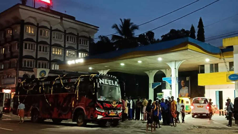 തൃശൂർ: തമിഴ്നാട്ടിൽ നിന്നുമുള്ള ശബരിമല തീർത്ഥാടകർ സഞ്ചരിച്ച ബസിന് തീ പിടിച്ചു. ഗുരുവായൂർ റെയിൽവേ മേൽപ്പാലം ഇറങ്ങി വന്നയുടനെയാണ് സംഭവം. സേലം എടപ്പാടിയിൽ നിന്ന് വന്ന ബസിനാണ് തീ പിടിച്ചത്. കുട്ടികളടക്കം 50 യാത്രക്കാരാണ് ബസിൽ ഉണ്ടായിരുന്നത്. മേൽപ്പാലം ഇറങ്ങി പെട്രോൾ പമ്പിന് മുന്നിലെത്തിയതോടെ ബസ് ഓഫാവുകയി മുൻവശത്തുനിന്ന് തീ പടരുകയായിരുന്നു. ഉടനെ നാട്ടുകാരും പെട്രോൾ പമ്പ് ജീവനക്കാരും ചേർന്ന് തീയണച്ചു.