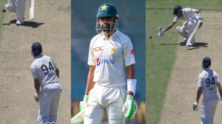 ബാറ്റിം​ഗിനിടെ ഓസ്‌ട്രേലിയന്‍ ബൗളര്‍ എറിഞ്ഞ പന്തില്‍ ഷാന്‍ മസൂദ് സ്‌ട്രൈറ്റ് ഡ്രൈവ് കളിച്ച പന്ത് നോൺ സ്ട്രൈക്കിൽ നിന്ന ബാബ‍‌‌‍‌‌ർ തടയാൻ ശ്രമിച്ചതാണ് എതിർ താരങ്ങളിലും പോലും സംശയത്തിനിടവരുത്തിയത്. തന്റെ സമീപത്തുകൂടി വന്ന പന്തിനെ പിടിക്കാന്‍ ശ്രമിക്കുന്ന ബാബറിന്റെ വീഡയോ സോഷ്യൽ മീഡിയയിൽ വൈറലായി.