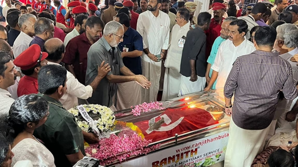 മുഖ്യമന്ത്രി, സിപിഐ ദേശീയ സെക്രട്ടറി ഡി.രാജ തുടങ്ങിയ നേതാക്കൾ കാനത്തിന് അന്ത്യാഞ്ജലി അർപ്പിക്കാൻ നേരിട്ടെത്തി. തിരുവനന്തപുരത്ത് സിപിഐ ആസ്ഥാനമായ പട്ട പിഎസ് സ്മാരകത്തിലെ പൊതുദർശനത്തിന് ശേഷം ഇന്നലെ ഉച്ചയോടെയായിരുന്നു കാനത്തിന്റെ മൃതദേഹം വിലാപയാത്രയായി കോട്ടയത്തെ വസതിയിലേക്ക് എത്തിച്ചത്. മന്ത്രിമാരും വിവിധ രാഷ്ട്രീയ കക്ഷി നേതാക്കളും വസതിയിലെത്തിയിരുന്നു.