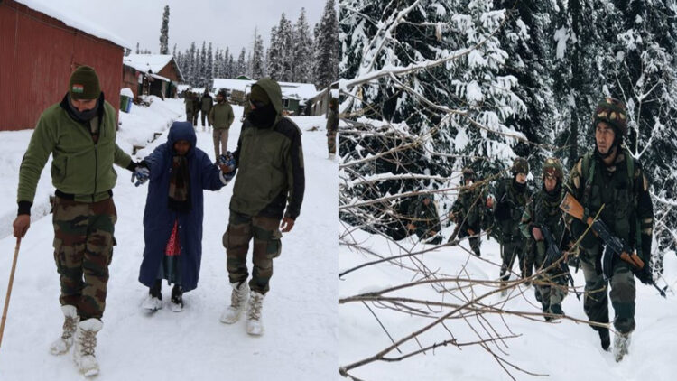 കശ്മീരിൽ അതിശക്തമായ മഞ്ഞുവീഴ്ച; വിനോദസഞ്ചാരികൾക്ക് കൈത്താങ്ങായി സൈന്യം