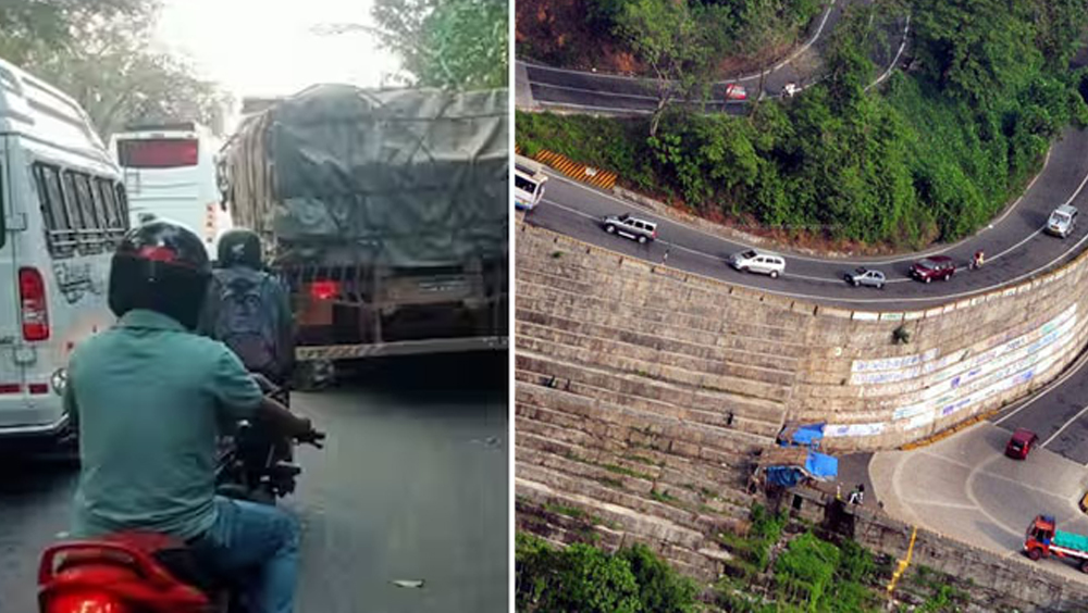 താമരശേരി ചുരത്തിൽ ചരക്കു ലോറി കുടുങ്ങി വൻ ഗതാഗത കുരുക്ക്; യാത്രികർ വെള്ളവും ഇന്ധനവും കരുതണമെന്ന് പോലീസ് നിർദ്ദേശം