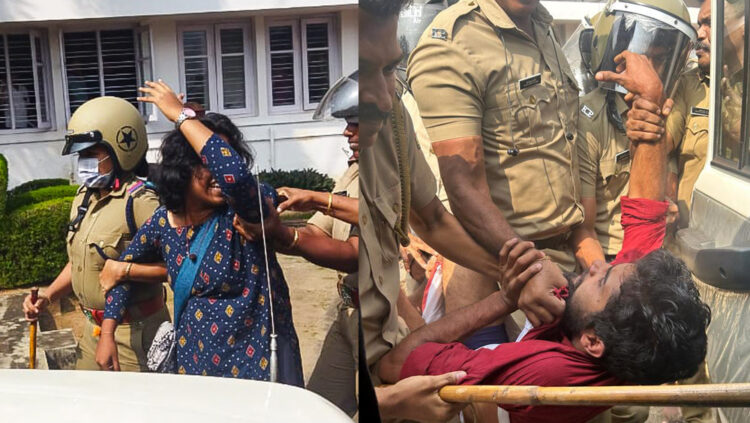 സെനറ്റ് യോഗത്തിനെത്തിയ പദ്മശ്രീ ബാലൻ പൂതേരി ഉൾപ്പെടെയുള്ള സെനറ്റ് അംഗങ്ങളെ എസ്എഫ്ഐ തടഞ്ഞതിൽ വൈസ് ചാൻസിലറും കൂട്ടുനിന്നതിൽ പ്രതിഷേധിച്ചാണ് എബിവിപി സമരവുമായി രംഗത്ത് വന്നത്. എസ്എഫ്ഐ സമരത്തിന് സംയമനം പാലിച്ചിരുന്ന പോലീസ് എബിവിപി പ്രവർത്തകർക്കുനേരെ വലിയ മർദ്ദനമാണ് അഴിച്ചുവിടുന്നത്.