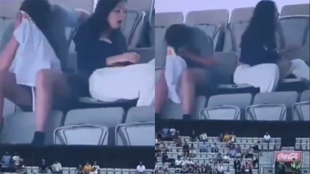 തങ്ങളുടെ ദൃശ്യം ബിഗ് സ്ക്രീനിലെത്തിയതോടെ ഇരുവരും പെട്ടെന്ന് ചാടിയെഴുന്നേൽക്കുകയായിരുന്നു. യുവതി ചുറ്റും അന്താളിച്ച് നോക്കുന്നതും കാണാം. സ്റ്റേഡിയത്തിൽ ഇതിന് പിന്നാലെ ആരവും ഉയർന്നു. ഇതിന്റെ വീഡിയോ സോഷ്യൽ മീഡിയയിൽ വൈറലായി.