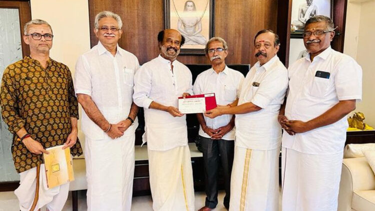 ചെന്നൈ: അയോദ്ധ്യ പ്രാണപ്രതിഷ്ഠയുടെ നിമന്ത്രണ പത്രവും പൂജിച്ച അക്ഷതവും ഏറ്റുവാങ്ങി രജനീകാന്ത്. അദ്ദേ​ഹത്തിന്റെ വസതിയിലെത്തിയ രാഷ്‌ട്രീയ സ്വയംസേവക്‌ സംഘം ദക്ഷിണ ക്ഷേത്രീയ പ്രചാരക് സെന്തിലിലിൽ നിന്നാണ് രജനീകാന്ത് നിമന്ത്രണ പത്രവും അക്ഷതവും ഏറ്റുവാങ്ങിയത്.