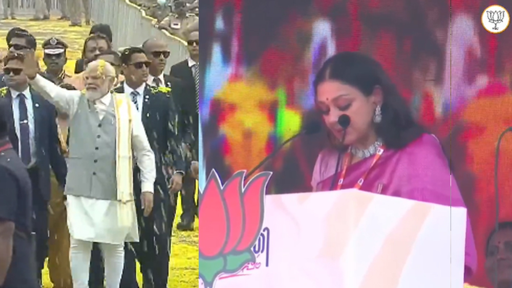 വിവിധ മേഖലകളിൽ സ്വന്തം സാന്നിധ്യം ഉറപ്പിച്ച സ്ത്രീരത്നങ്ങളാണ് പ്രധാനമന്ത്രിക്കൊപ്പം തേക്കിൻകാട്ട് മൈതാനത്തിലെ വേദി പങ്കിടാനായി എത്തിയത്. വേദിയിലെത്തിയ പ്രധാനമന്ത്രിയെ ബിജെപി നേതാവ് ശോഭ സുരേന്ദ്രൻ ഷാളണിയിച്ച് സ്വീകരിച്ചു. പ്രധാനമന്ത്രി മറിയക്കുട്ടി, വൈക്കം വിജയലക്ഷ്മി തുടങ്ങിയവരെ പ്രധാനമന്ത്രി കൈകൾ കൂപ്പി വണങ്ങി.