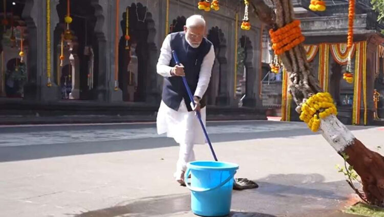#WATCH | PM Modi took part in ‘Swachhata Abhiyan’ today at the Kalaram temple in Maharashtra’s Nashik