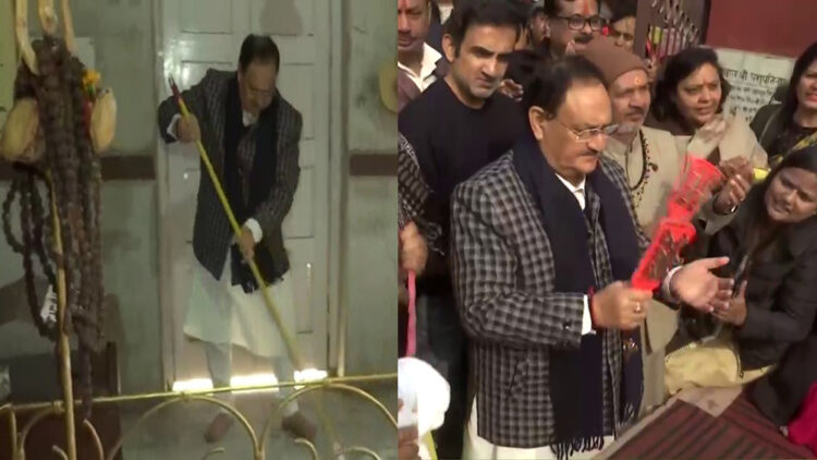 സ്വച്ഛ് തീർത്ഥ് ക്യാമ്പയിൻ: ഡൽഹിയിലെ പശുപതിനാഥ് ക്ഷേത്ര പരിസരം വൃത്തിയാക്കി ബിജെപി ദേശീയ അദ്ധ്യക്ഷൻ ജെപി നദ്ദയും ഗൗതം ഗംഭീറും