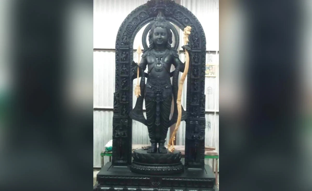കഴിഞ്ഞ ദിവസമാണ് രാംലല്ലയുടെ വി​ഗ്രഹം ശ്രീകോവിലിൽ പ്രതിഷ്ഠിച്ചത്. വിഗ്രഹത്തിന്റെ കണ്ണുകൾ മാത്രം മൂടിയ ചിത്രം ക്ഷേത്ര ട്രസ്റ്റ് രാവിലെ പങ്കുവച്ചിരുന്നു. കർണാടകയിലെ പ്രശസ്ത ശിൽപിയായ അരുൺ യോഗിരാജാണ് 51 അടി ഉയരവും 1.5 ടൺ ഭാരവുമുള്ള രാംലല്ലയുടെ വിഗ്രഹം നിർമ്മിച്ചത്.