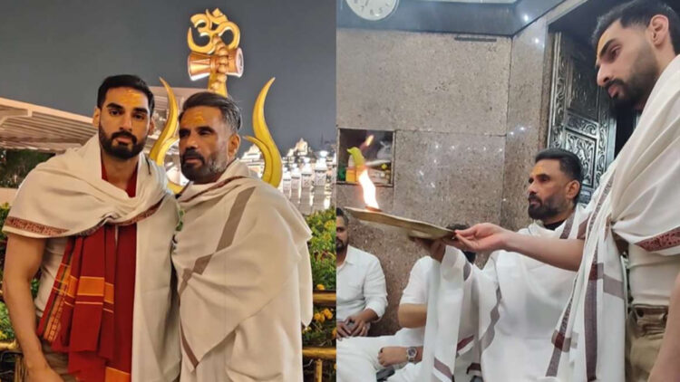 ഉജ്ജയിനിലെ മഹാകാലേശ്വർ ക്ഷേത്രത്തിൽ ദർശനം നടത്തി നടൻ സുനിൽ ഷെട്ടിയും മകൻ അഹാൻ ഷെട്ടിയും. പരമ്പരാഗത ഭാരതീയ വസ്ത്രത്തിലായിരുന്നു ഇരുവരും ക്ഷേത്രദർശനത്തിനെത്തിയത്. ഇരുവരും ഭസ്മ ആരതിയിലും പങ്കെടുത്തു. ”ഹർ ഹർ മഹാദേവ്, ജയ് മഹാകാൽ” എന്ന അടിക്കുറിപ്പോടെ ഇതിന്റെ വീഡിയോ ദൃശ്യങ്ങളും സുനിൽ ഷെട്ടി പങ്കുവച്ചിട്ടുണ്ട്.