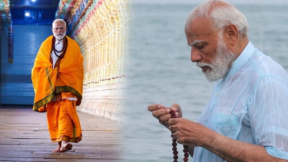 ചെന്നൈ: രാമേശ്വരം രാമനാഥസ്വാമി ക്ഷേത്രത്തിൽ ദർശനം നടത്തി പ്രധാനമന്ത്രി നരേന്ദ്രമോദി. കടലിൽ സ്നാനം ചെയ്ത് ജപത്തിൽ മുഴുകുന്ന അദ്ദേഹത്തിന്റെ ചിത്രങ്ങളും ദൃശ്യങ്ങൾ ഇതിനോടകം പ്രചാരം നേടിക്കഴിഞ്ഞു. ക്ഷേത്രത്തിലെത്തിയ പ്രധാനമന്ത്രിയെ പൂർണ്ണകുംഭം നൽകിയാണ് സ്വീകരിച്ചത്. ദർശനത്തിന് മുന്നോടിയായി ക്ഷേത്രത്തിലെ തീർത്ഥങ്ങളിൽ നിന്നുള്ള ജലത്തിൽ സ്നാനം ചെയ്യുകയും ചെയ്തു. ഇതിന്റെ ചിത്രങ്ങളും സമൂഹമാദ്ധ്യമത്തിലൂടെ പങ്കുവെച്ചിട്ടുണ്ട്. ത്രിദിന സന്ദർശനത്തിനാണ് പ്രധാനമന്ത്രി തമിഴ്നാട്ടിൽ എത്തിയത്.