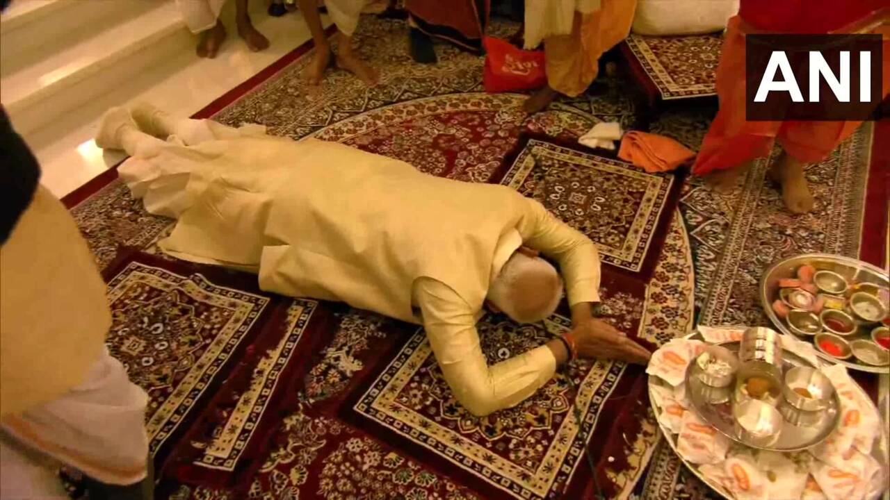 പൂർണ സമർപ്പണം; ദണ്ഡനമസ്കാരം ചെയ്ത് പ്രധാനസേവകൻ; രാം ലല്ലയെ വണങ്ങി നരേന്ദ്രൻ; ചിത്രങ്ങൾ