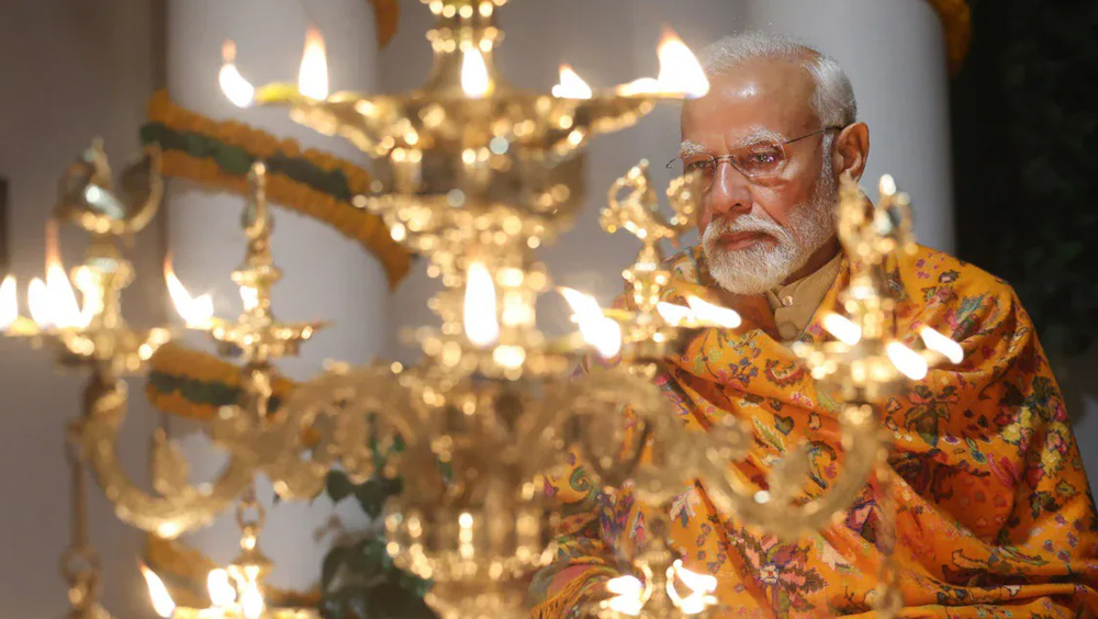 മഞ്ഞ പശ്മീരി ഷാൾ അണിഞ്ഞ് ശ്രീരാമചന്ദ്രന്റെ മുന്നിൽ വെങ്കല വിളക്കുകൾ തെളിയിക്കുന്ന പ്രധാനമന്ത്രി നരേന്ദ്രമോദിയുടെ ചിത്രങ്ങളാണ് ഇപ്പോൾ സമൂഹമാദ്ധ്യമങ്ങളിൽ തരംഗമാവുന്നത്. ‘രാമജ്യോതി’ എന്ന അടിക്കുറിപ്പോടെയാണ് അദ്ദേഹം എക്സിൽ ചിത്രങ്ങൾ പങ്കുവച്ചിരിക്കുന്നത്. 14 വർഷത്തെ വനവാസം അവസാനിപ്പിച്ച് ശ്രീരാമൻ തിരികെ അയോദ്ധ്യയിൽ എത്തുന്ന ശുഭദിനമാണ് ജനങ്ങൾ ദീപാവലിയായി ആഘോഷിക്കുന്നത്. ഇന്ന് മറ്റൊരു ദീപാവലിയാണെന്നും അദ്ദേഹം പറഞ്ഞു.