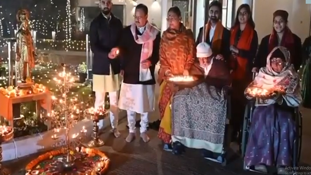 ന്യൂഡൽഹി: രാജ്യത്തുടനീളമുള്ളവർ അയോദ്ധ്യാ രാമക്ഷേത്രത്തിന്റെ പ്രാണപ്രതിഷ്ഠ ആഘോഷിക്കുമ്പോൾ ദീപങ്ങൾ തെളിയിച്ച് ഭഗവാൻ ശ്രീരാമനെ വരവേൽക്കുകയാണ് ബിജെപി ദേശീയ അദ്ധ്യക്ഷൻ ജെപി നദ്ദ. ഡൽഹിയിലെ വസതിയിൽ ചിരാതുകൾ തെളിയിച്ച് നദ്ദ ദീപോത്സവത്തിൽ പങ്കുചേർന്നു. കുടുംബത്തോടൊപ്പമാണ് നദ്ദ ആഘോഷിച്ചത്.